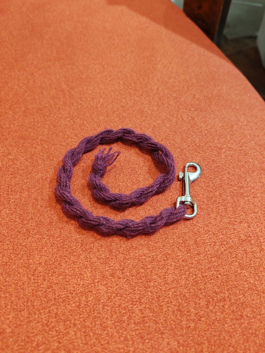 Lonża wykonana z włóczki.